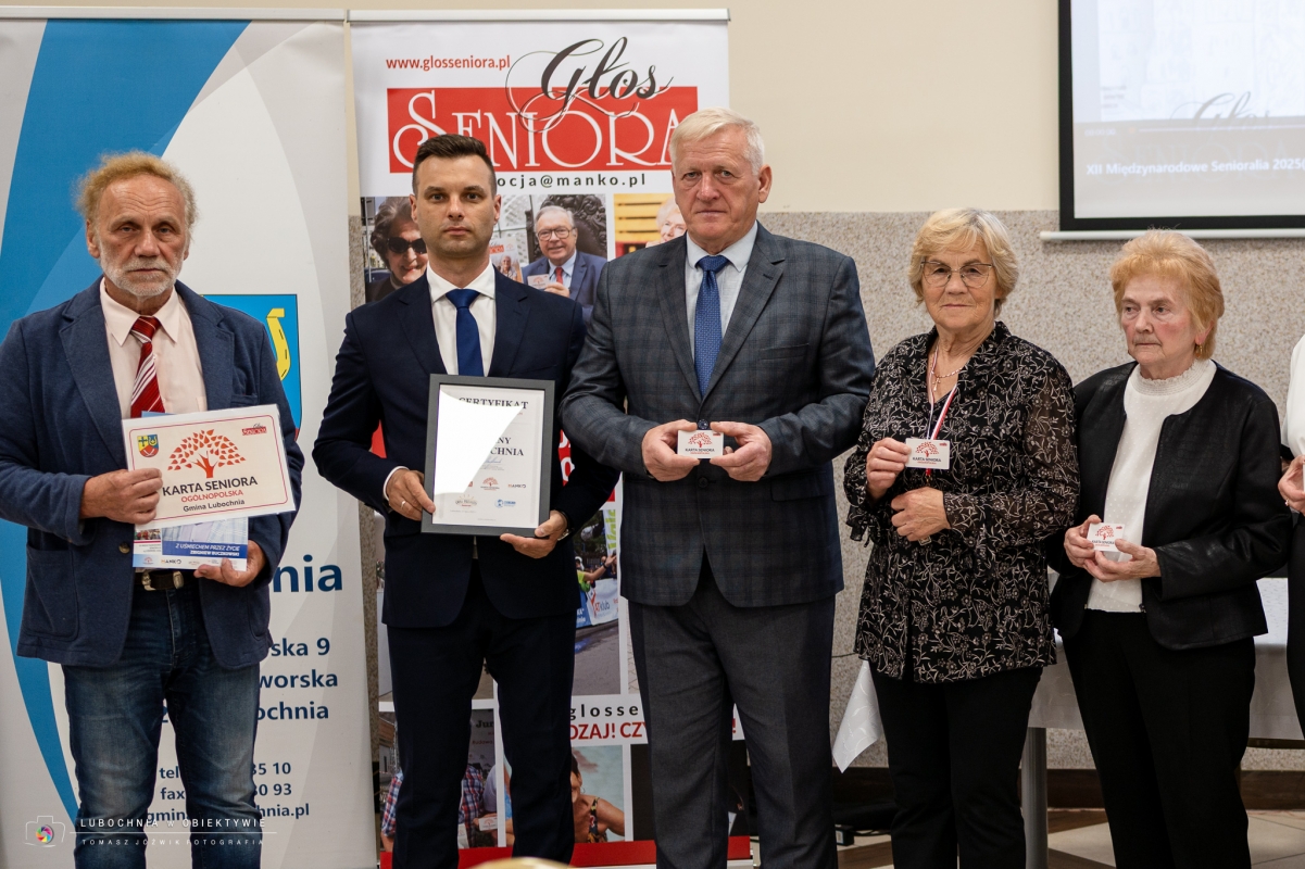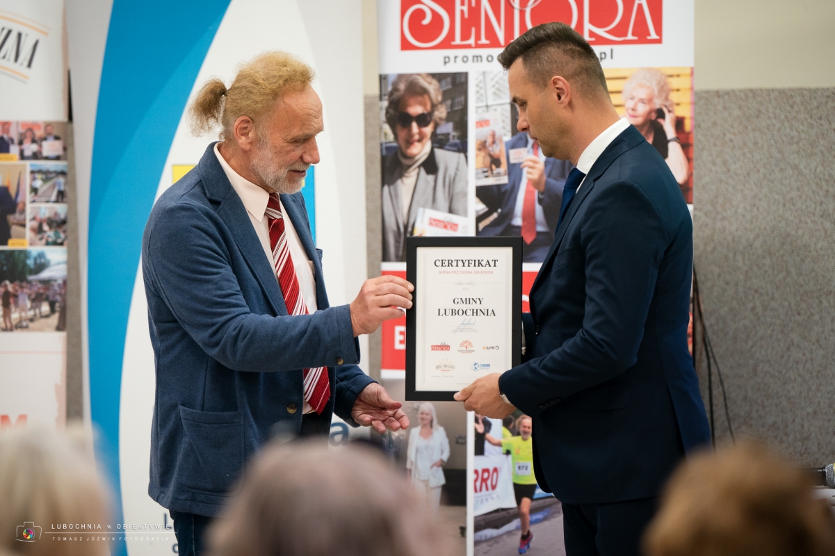 Podczas ceremonii nastąpiło oficjalne wręczenie Certyfikatu Gmina Przyjazna Seniorom, który jest potwierdzeniem działań i polityk skierowanych na wsparcie seniorów na poziomie lokalnym. Certyfikat ten jest wyróżnieniem dla gmin, które realizują działania sprzyjające aktywizacji, integracji oraz poprawie jakości życia osób starszych. Z rąk Pana Marka Plicha - Ambasadora Głosu Seniora Certyfikat potwierdzający oficjalne dołączenie gminy do elitarnego grona samorządów wspierających seniorów, odebrał Zastępca Wójta Gminy Lubochnia, Pan Łukasz Świech.