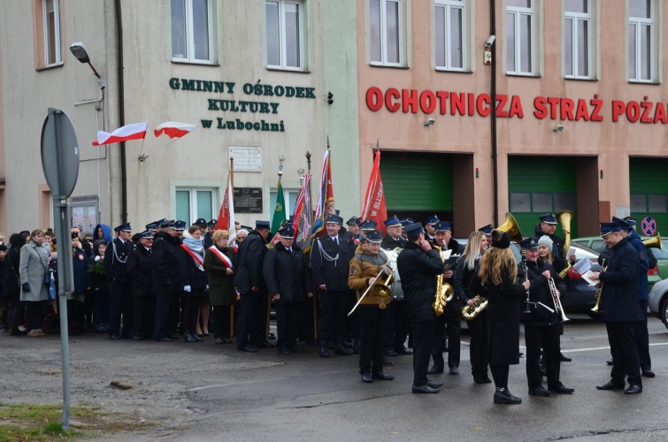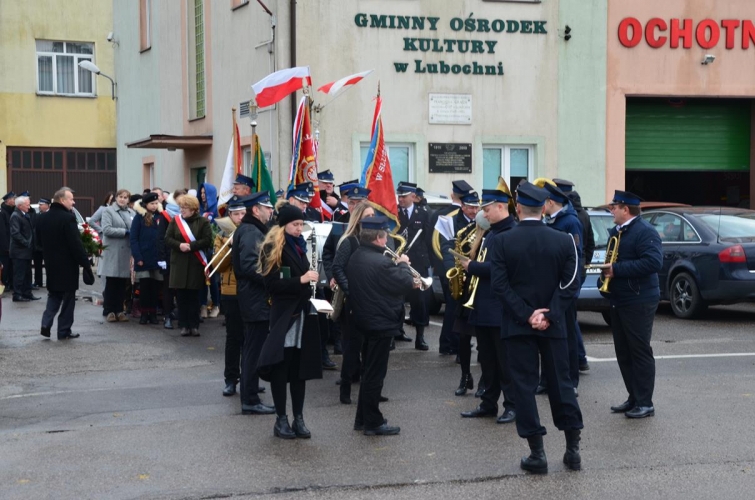 W obchodach udział wzięli Wójt Gminy Lubochnia, radni, sołtysi, przedstawiciele OSP, delegacje szkół, pracownicy kultury i urzędu gminy oraz mieszkańcy. Po mszy świętej wszyscy zgromadzeni, na czele z pocztami sztandarowymi oraz orkiestrą Ochotniczej Straży Pożarnej udali się pod pomnik Marszałka Józefa Piłsudskiego. Po odegraniu hymnu narodowego i wciągnięciu flagi państwowej na maszt przemówienie okolicznościowe wygłosił Wójt Gminy Lubochnia pan Tadeusz Józwik. Wszystkim zebranym przypomniał sytuację polityczną panującą w tamtym okresie i o wielkim marzeniu wolnej Polski. Podkreślił, że mimo, iż wielcy Polacy tacy jak Marszałek Józef Piłsudski czy Roman Dmowski wywodzili się z różnych środowisk politycznych i w związku z tym nie zawsze ze sobą się zgadzali, ale potrafili się zjednoczyć ponad podziałami w imię większego celu, jakim było wolne i suwerenne państwo Polskie. Na koniec Wójt Gminy poprosił wszystkich o codzienną manifestacje swojego patriotyzmu, poprosił abyśmy uczyli nasze dzieci miłości do ojczyzny, abyśmy mieli swoich następców, którzy w poczuciu odpowiedzialności dalej będą kontynuować dzieło zapoczątkowane 11 listopada 1918 roku.