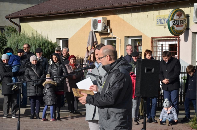 Głos zabrał również pan Dariusz Szymański autor książki „Gdzie spoczywa Hubal?”, który wręczył premierowe książki osobom w ramach podziękowania za pomoc w zbieraniu informacji o miejscu pochówku majora Henryka Dobrzańskiego „Hubala”.
